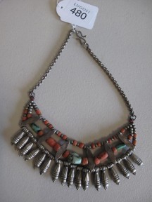 Lot #480 - Tribal Tibetan necklace in Copper Nickel Silver with Coral and Turquoise