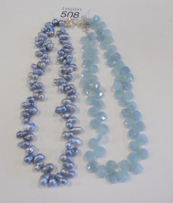 Lot #508 - Blue pearl necklace with a blue crystal necklace