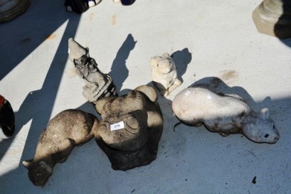 Lot #275 - 5 small cast concrete garden animals incl cats