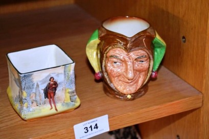 a squat vase 'Romeo' & a small character jug 'The Jester' -