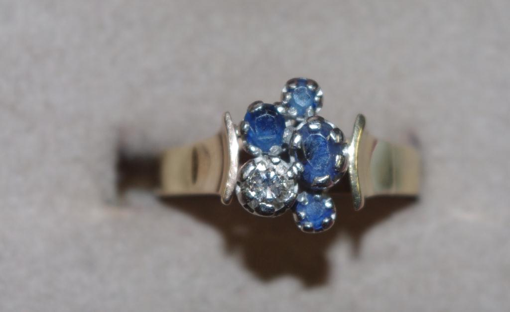 Lot #286 - 9ct gold ring set with a diamond & four sapphires