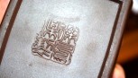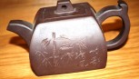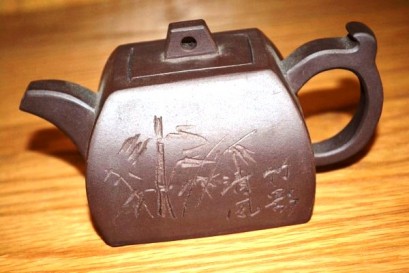 geometric design with engraved bamboo flowers & calligraphy, height 7.5cm -