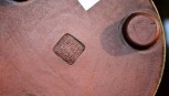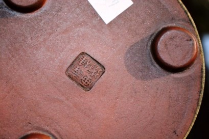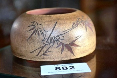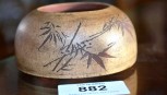 Lot Description:Chinese terracotta brush washer with dome form with engraved bamboo design and calligraphy