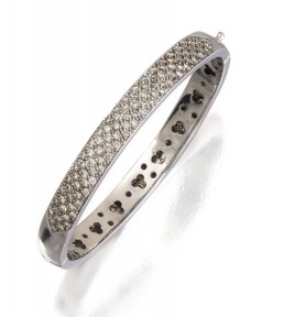 The oval hinged bangle is pave-set to the top with round brilliant-cut diamonds together weighing approximately 2.75 carats, mounted in 18ct white gold, gross weight approximately 42.70 grams, width approximately 8mm, inner diameter approximately 62mm. -