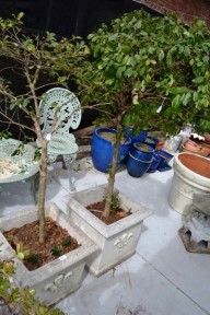 Lot Description:Pair of ficas trees in square concrete garden pots