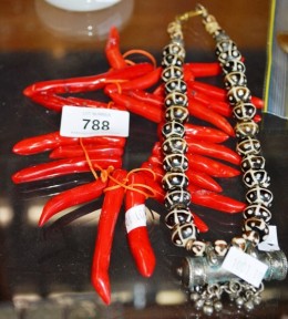 Lot #788 - 2 x necklaces - one brown & white decorated stone beading with white metal pendant
