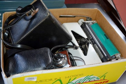 Lot #1090 - Box containing a qty of vintage cameras & typewriter