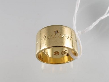 with a very small diamond. Band width 10mm. Wt 8.1g. -
