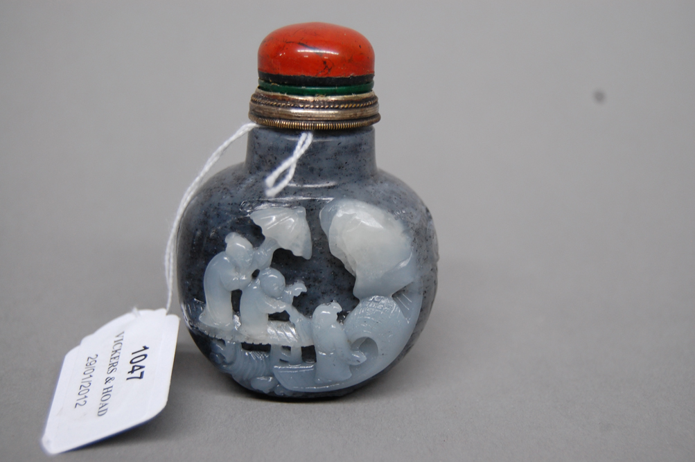 Lot Description:Rare Chinese black & white jade snuff bottle