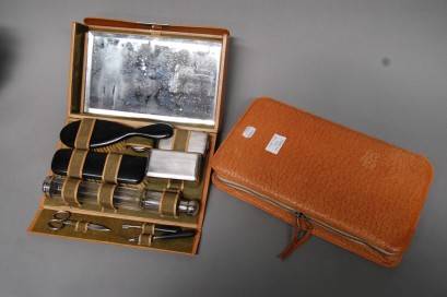 Lot #1090 - Two Gentleman's leather cased toilet sets