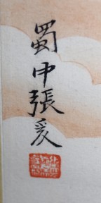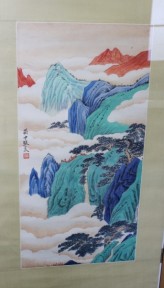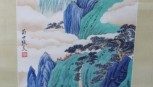 cloudy mountainscape signed middle left with script and a chop , 66.5cm x 32.5cm -