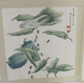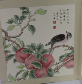 comprising , seven paintings, each signed upper right in script and with a chop, 32.5cm x 32cm -