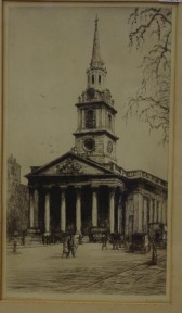 London. Signed lower right, titled lower left,"St Marten in the fields". 25.5 x 14.5 cm. -