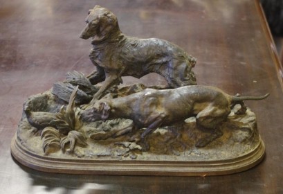(metal), 2 dogs hunting a pheasant, 42cm wide, -