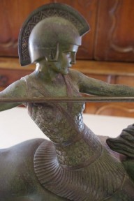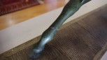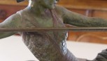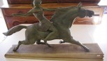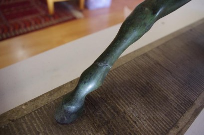 metal with stone base, base signed 'MELO', crack to metal leg -