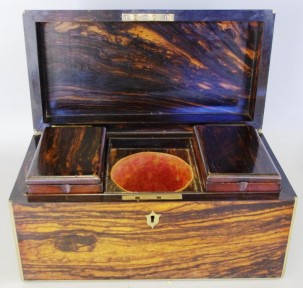 Lot #1574 - Antique Coromandel and brass tea caddy