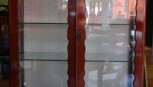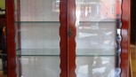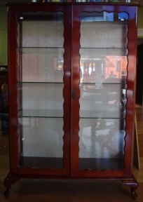 with three glass shelves and cabriole legs. height 144cm, width 96cm, and depth 40cm. -