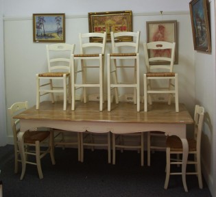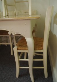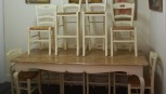 comprising of table 210cm x 90cm, 78cm high, 8 rush seated chairs and 2 stools -