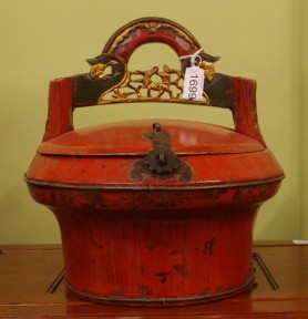 Lot #1699 - Oriental red lacquer and gilt food basket