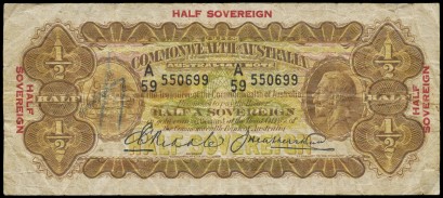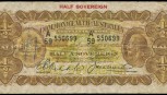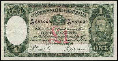 Half Sovereign/10/-, Riddle/Heathershaw, VG. Plus 1933 (R.28) KGV, £1, Riddle/Sheehan, VF+, vertical & horiz. folds but still very firm and crisp. -