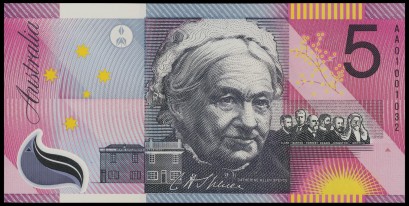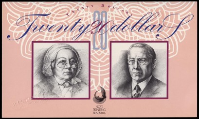 1988 $10 Bicentenary Folder single & a cons. run of 4; 1992 $5 First & Last Standard Folder single & cons. run of 3 and Embossed; 1993 $10 First & Last Embossed Folder; 1994 $20 First & Last Embossed Folder; 1993 Eminent Women Folder, Black Serial Numbers; 2001 (Mc.$5.GF8) $5 Cent. of Federation Folder, Lowest Numbers, AA01 001032; Downies First & Last $1 & $2, x3 of each. All fine, cat $1,600+. -