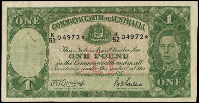 Lot Description:STAR BANKNOTE: 1942 (R.30s) £1 Armitage/McFarlane