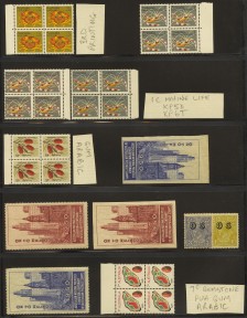 1960's to recent as singles, sets, souvenir sheets etc. Much as blocks of 4 or larger. All values to $10.00. Incl. Show o'pts, Framas, International Post and a few pre-decimals. Majority fine, many 100's. FV $2,000+. -
