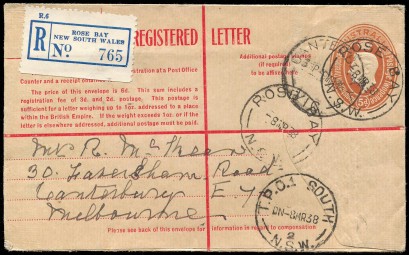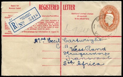 KGV (1), KGVI (8) & QEII (22); Envelopes KGV (5 incl. 1d red mint, 1d up-rated ?d x2, 1? brown & red used), KGVI (12) and QEII (11); Aerogrammes (20 incl. a SPECIMEN). Majority mint, some duplication, described and priced. -
