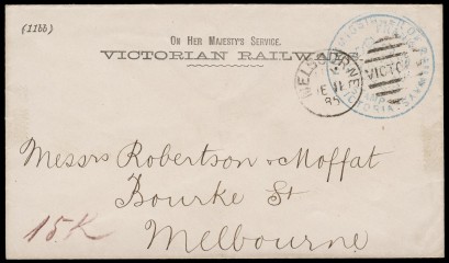 Lot Description:C - Postal Stationery: 1885 (June 11) an OHMS cover for the 'VICTORIAN RAILWAYS'