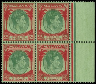 Lot Description:** - 1938 (SG.292) KGVI $5 green & red on emerald