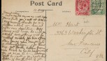 both perforated 'AC' and tied by double-ring SINGAPORE cds on RP postcard to California. [The 'AC' perfin was created for A.Clouet & Co., food manufacturers and wholesalers.]. -