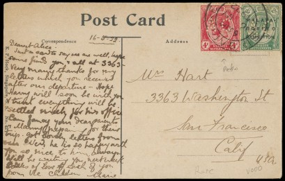 Lot #325 - PC - 1922 (May 6) usage of KGV 4c carmine-red in combination with 2c green 'MALAYA-BORNEO EXHIBITION' overprint