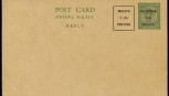 Lot Description:PS - POSTAL STATIONERY: 1942 PAHANG 2c green Reply Card uprated 2c and overprinted