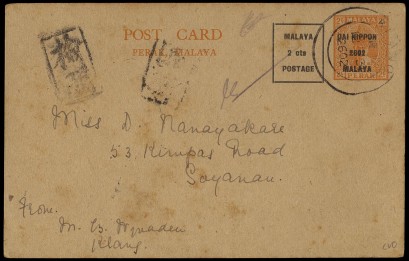 Lot Description:PS - POSTAL STATIONERY: Dec.1942 usage of PERAK 2c Postal Card