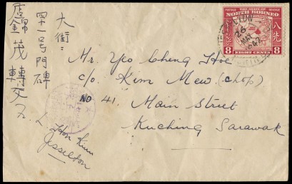 on a commercial cover, from JESSELTON to KUCHING with LABUAN and MIRI backstamps. -