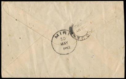 Lot #399 - C - POSTAL HISTORY: JAPANESE OCCUPATION PERIOD: May 1942 usage of unoverprinted 8c scarlet