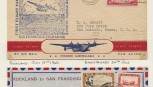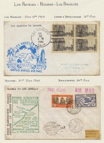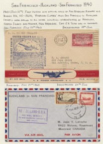 with San Francisco - San Francisco and Los Angeles - Los Angeles routes. With 26 illustrated first flight covers on annotated pages, intermediates incl. Canton Island, New Hebrides, Honolulu and Noumea. -