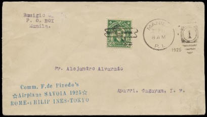 Lot #411 - C - PHILIPPINES - DE PINEDO FLIGHT: 16 Sept.1925 (Muller.8) Rome - Philippines - Tokyo