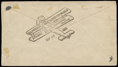 intermediate, Manila - Aparri, carried by De Pinedo in a Savioia-Marchetti s16 flying boat as part of his round the world flight, franked Philippines 2c. De Pinedo cachet on reverse. Minor faults. -