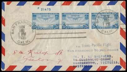 Lot Description:C,* - 1934-36 DEVELOPMENT OF CLIPPER FLIGHTS, SAN FRANCISO TO PHILIPPINES: group of covers