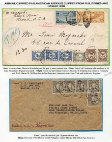 as a study of the first flights & development of the San Francisco to Manila route. With 8 Oct. 1934 Hawaii inter-island service flown covers, 22 Nov.1935 China Clipper flight to Manila & return flight covers, intermediates to and from Guam & connecting to other destinations incl. Hong Kong, Brunei & Canada. A useful study. (17 covers) (17) -