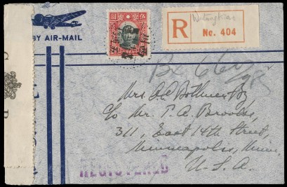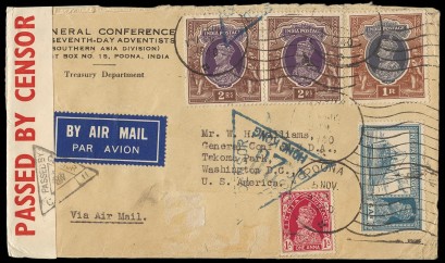 Oct.1940 Netherlands Indies - New York (2), 1940 India - USA (2) , Oct.1940 USA - Iraq (2), Nov.1940 China - USA & England and Oct. 1940 India - Canada. Attractive and high frankings. (10) -
