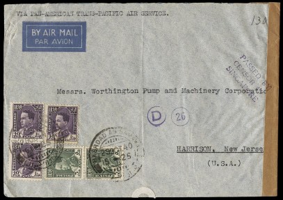 Lot Description:C - 1940-41 airmail covers carried across the Pacific by Clipper service with Sept.1940 Southampton - Fiji