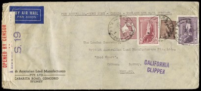 Lot Description:C - 1941 group of commercial covers carried across the Pacific by Clipper service to various destinations