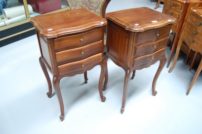 Lot Description:Pair of French Louis XV beech three drawer nightstands