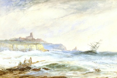 ‘A Sailing Ship Floundering off a Castle Topped Promontory’