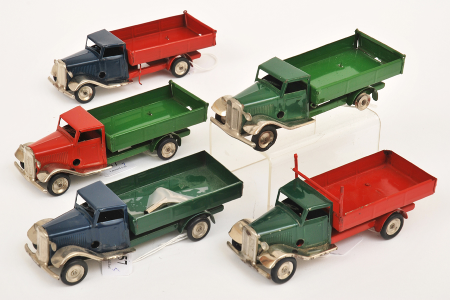 Red Cab, Mid Green Back; Dark Blue Cab, Dark Green Back; Dark Blue Cab, Red Back; Dark Green Cab, Red Back; And Dark Green Cab, Mid Green Back, All Unboxed, One With Key (G) (5) -