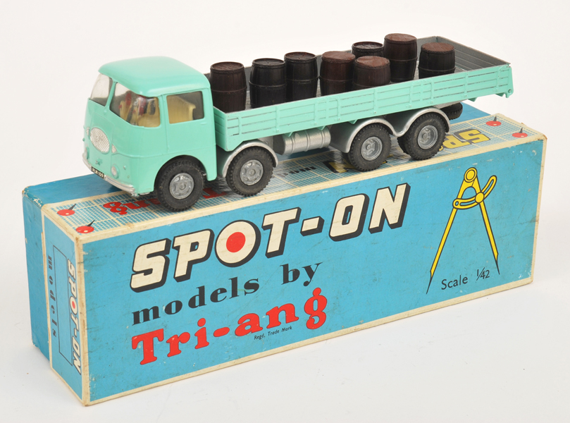 With Flat Float With Sides With Barrel Load, Torquoise Cab And Body, Cream Interior, 8 X Brown Plastic Barrels, With Internal Packaging (VG-E Box G) -