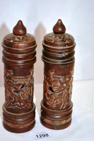 Lot Description:Pair of Chinese carved bamboo incense burners with pierced detail
