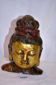 Lot Description:Cast metal Buddha head with painted and gilded decoration